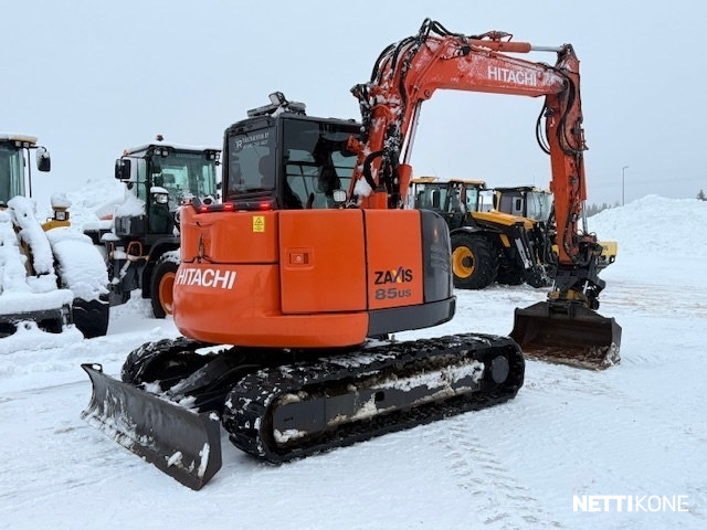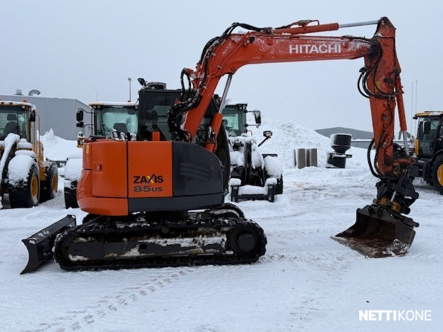 Tässä olisi asiallinen 8500kg Hitachi, kumiteloilla. näyttävän näköinen kone. Tämä on ns,mono puomilla kuin isommatkin kaivurit.