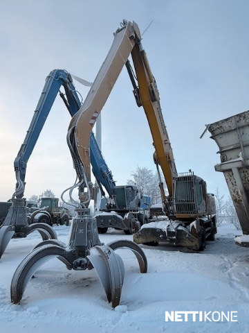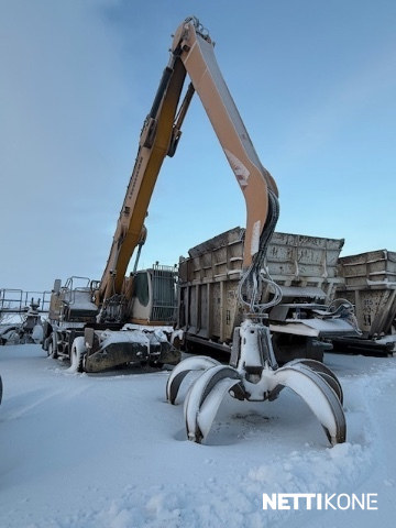 Siitä lähtisi edukkaasti nyt kookas materiaalin käsittelykone romu tai roskahommiin, ollut romuraudnn käsittelyssä, hyvä ylettävyys, nouseva ohjaamo, Renkaat ei ole kovin vanhat.