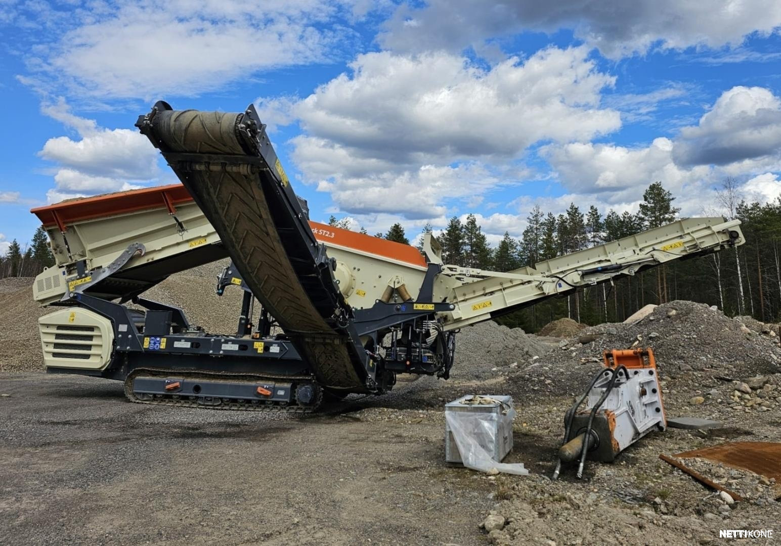 Tässä olisi lähes uusi teloilla kulkeva suorasyöttö seula nyt tarjolla, Kone on melko kompaktin kokokoinen paino noin 17500kg näin ollen melko helppo liikutella, pokkakärry tai täysperälavetti riittää. Koneeseen löytyy useita verkkoja. On radio-ohjaus yms. Tämä tuote toimipaikassamme Torniossa.